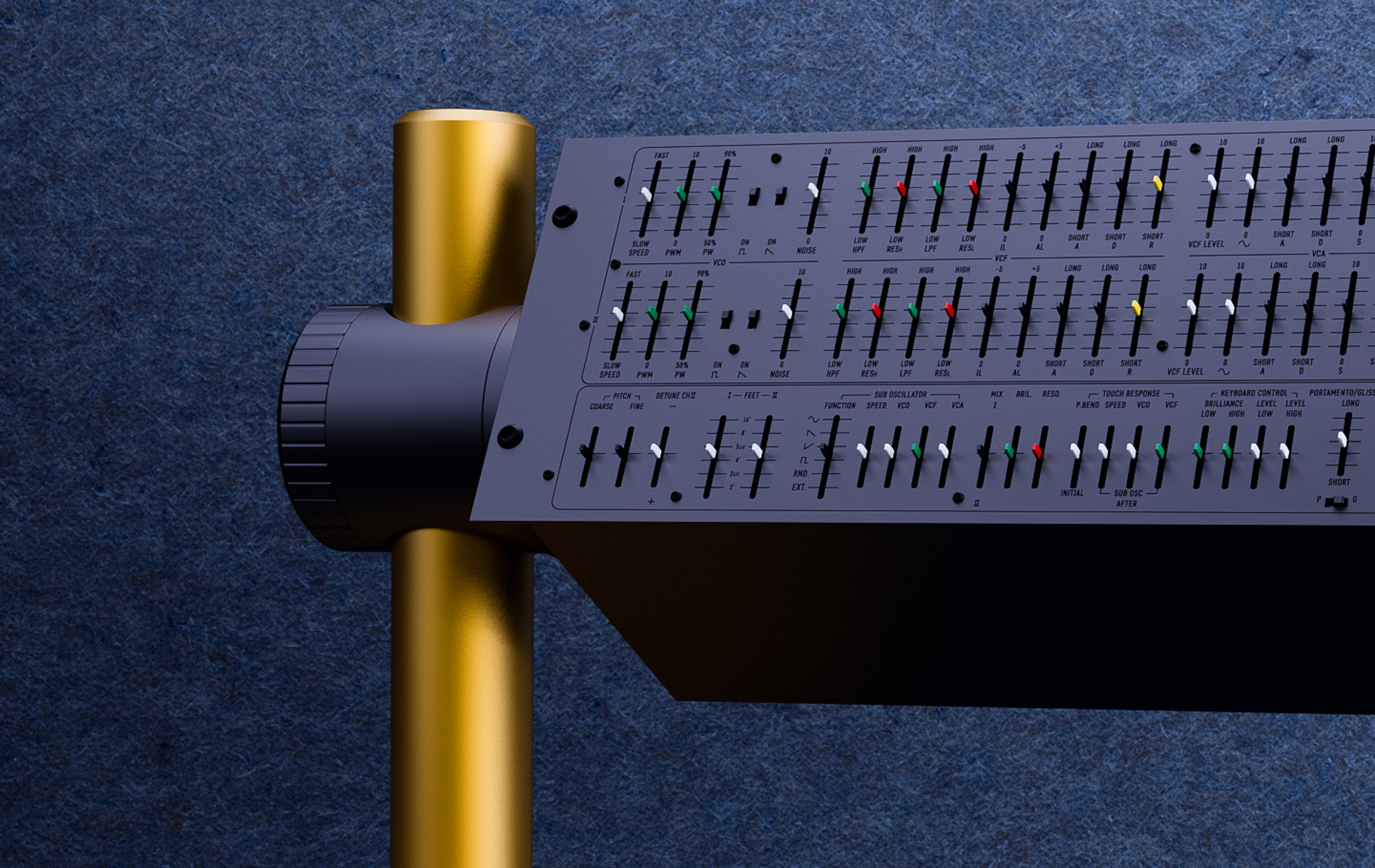 Two XY Joysticks with pin modulation matrix and ribbon controller for maximal expression.